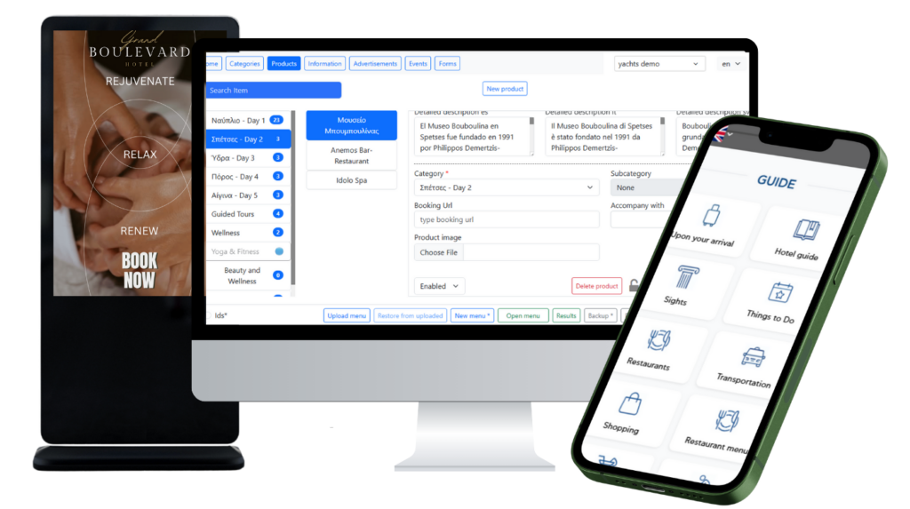 Αναβαθμίστε την εικόνα της ρεσεψιόν σας, χωρίς στοίβες φυλλαδίων. Συγκεντρώστε ψηφιακά όλα τα ενημερωτικά υλικά των συνεργατών σας στο Menufi — μια καθαρή, μοντέρνα και φιλική προς το περιβάλλον λύση.
